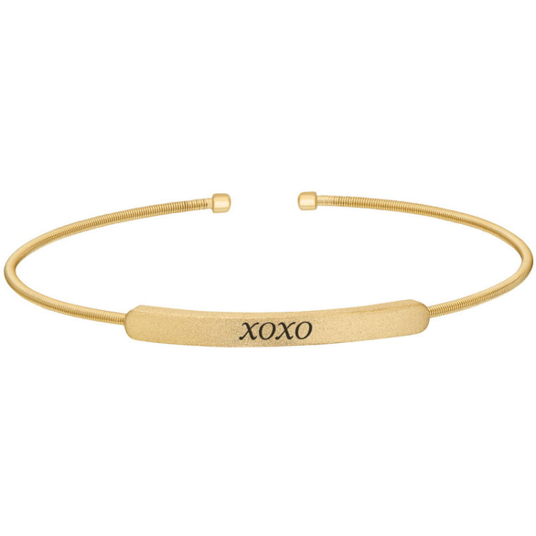 Gold finish sterling silver cable cuff bracelet with name plate - xoxo