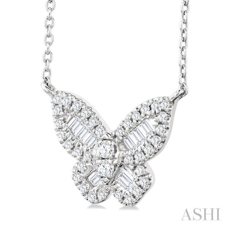 1/3 Ctw Petite Butterfly Baguette and Round Cut Diamond Fashion Pendant With Chain in 10K White Gold