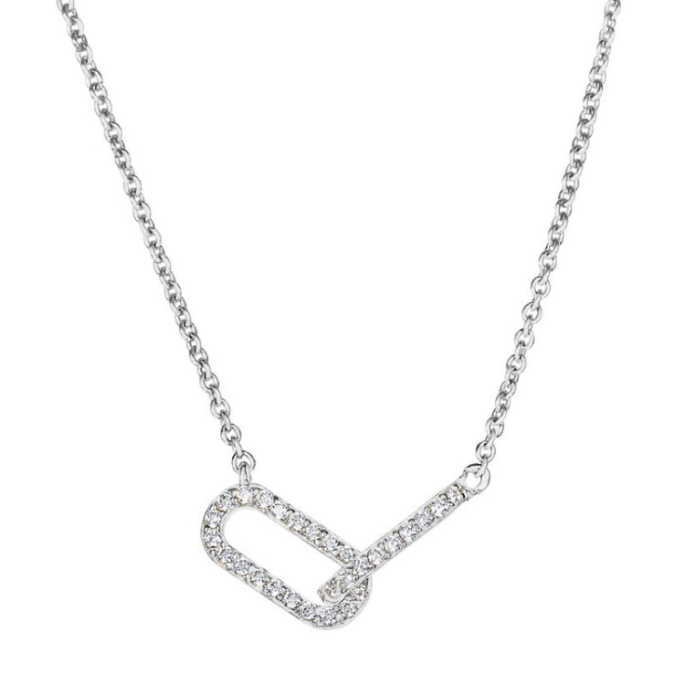 Platinum finish sterling silver micropave 2 interlocking links necklace with simulated diamonds on a 16-18 adjustable chain