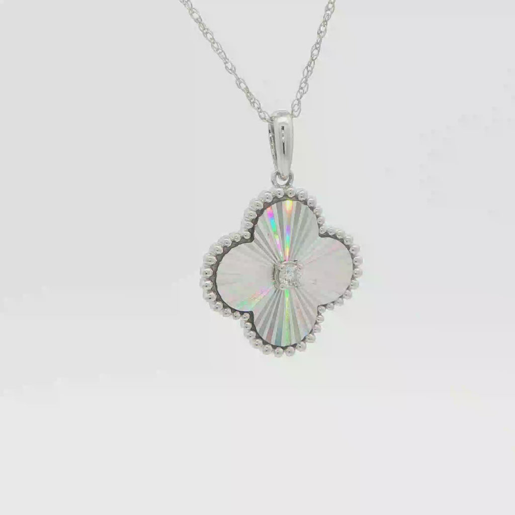 White Gold Clover Charm Necklace with Round Brilliant Diamond