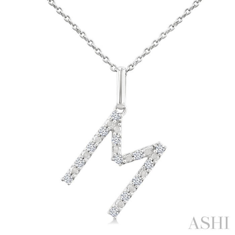 1/10 Ctw Initial 'M' Round Cut Diamond Fashion Pendant With Chain in Sterling Silver