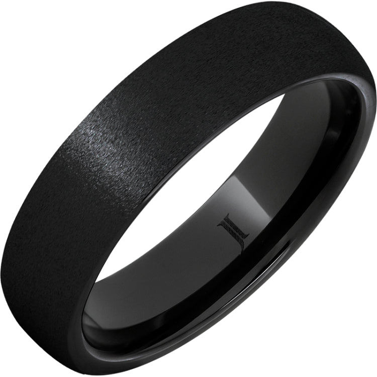 A true classic in the popular 6mm width, this Black Diamond Ceramic ring has a gentle domed shape and textured grain finish. This ring is also made in Serinium® and Rugged Tungsten, and can be given a variety of finishes including polish, satin, and stone. Men's and women's sizes; inside rounded Comfort Fit.Black Diamond Ceramic is a brand of high tech ceramic jewelry that is extremely hard and light weight, resulting in a beautiful and enduring ring. Colored throughout rather than coated, Black Diamond Ceramic will not show the effects of wear.