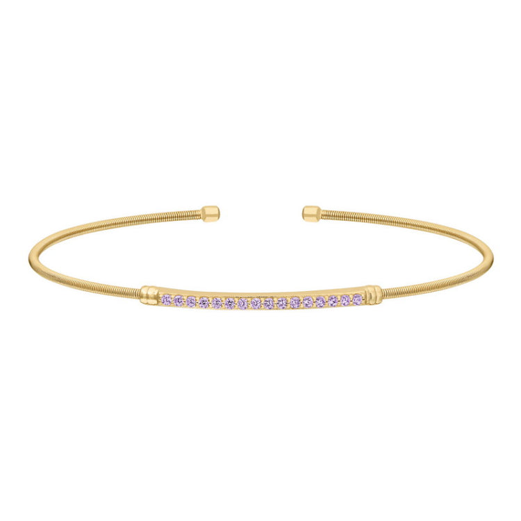 Gold finish sterling silver cable cuff bracelet with simulated light amethyst birth gems - june