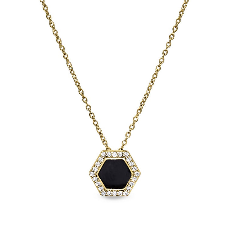 Gold vermeil sterling silver micropave black enamel hexagon pendant with simulated diamonds on 16 -18 cable chain