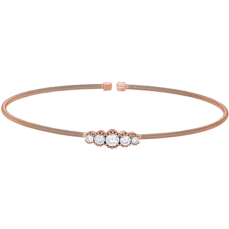 Rose gold finish sterling silver cable cuff bracelet with graduated five stone simulated diamonds