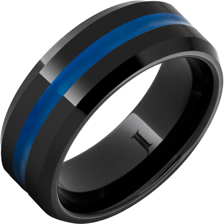 A solid band of blue enamel symbolizing our law enforcement community stands proudly in the center of this Black Diamond Ceramic ring. Part of our First Responder Collection of rings commemorating the emergency services: Police, Fire, Paramedics and Medical Personnel. Inside rounded Comfort Fit for wearability, available in both men's and women's sizes.Our First Responder Collection is the perfect choice for firefighters, paramedics, police and emergency medical technicians, featuring the colors of the emergency services. Available in Serinium®, Black Diamond Ceramic and Rugged Tungsten.